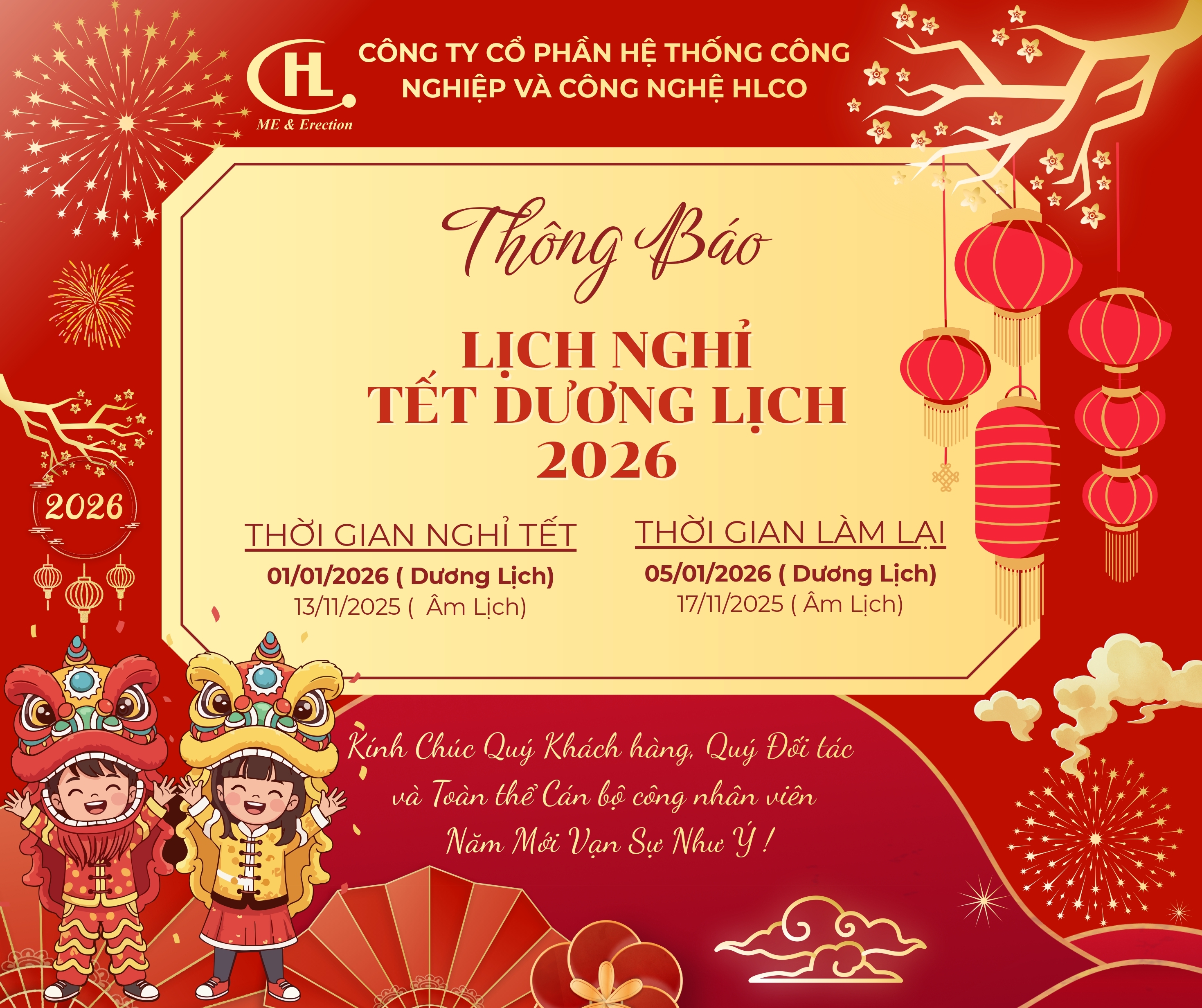 Để thuận tiện trong kế hoạch làm việc giữa HLCO, Quý khách hàng và Quý đối tác, Xin thông báo lịch nghỉ lễ Tết dương lịch của Chúng tôi như sau: